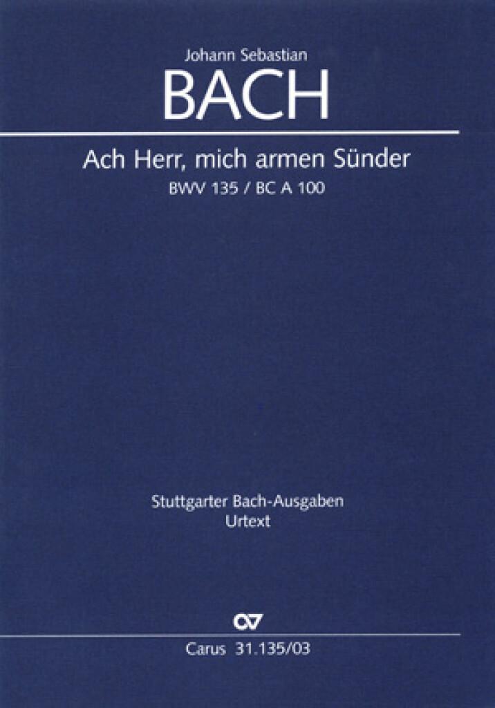 Bachs kantate “Ach Herr, mich armen Sünder” (BWV 135) er et af hans mest bevarede musikstykker. Kantaten er arrangeret til solister (Sopran, Alt, Tenor, Bass), kor (SATB) og et kammerorkester bestående af to oboer, to violiner, viola, violoncello, zink, trombone og basso continuo. Stykket er et udtryk for fromhed og ydmyghed og er en bøn til Gud om tilgivelse og frelse. Bachs særlige evne til at kombinere kirkemusikalske elementer med barokmusikkens virtuose stil er tydelig i BWV 135. Kantaten er et vigtigt og smukt stykke af Bachs repertoire og er en væsentlig del af den klassiske musiktradition.